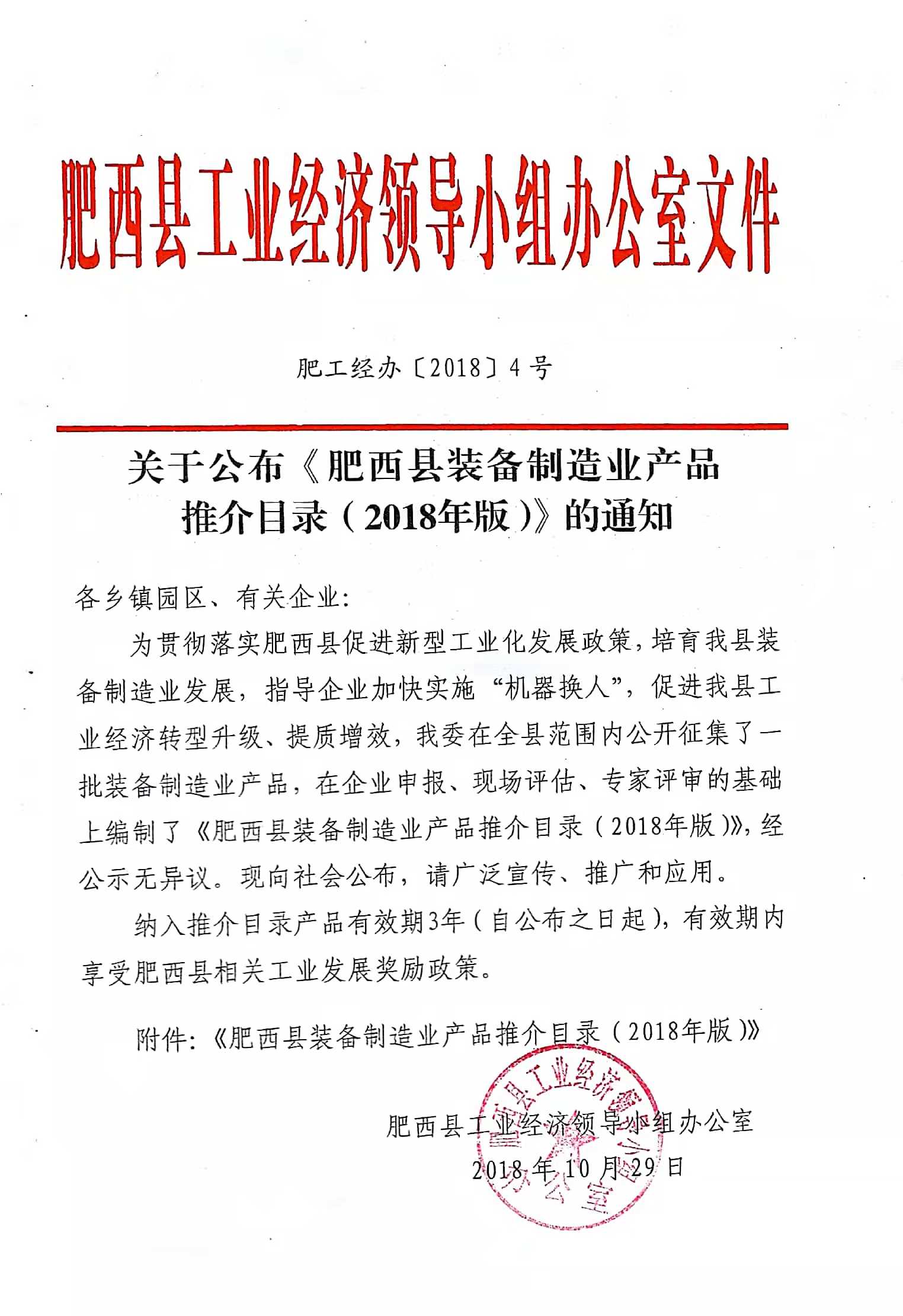 肥西縣經(jīng)濟信息委員會推薦產(chǎn)品入庫批文